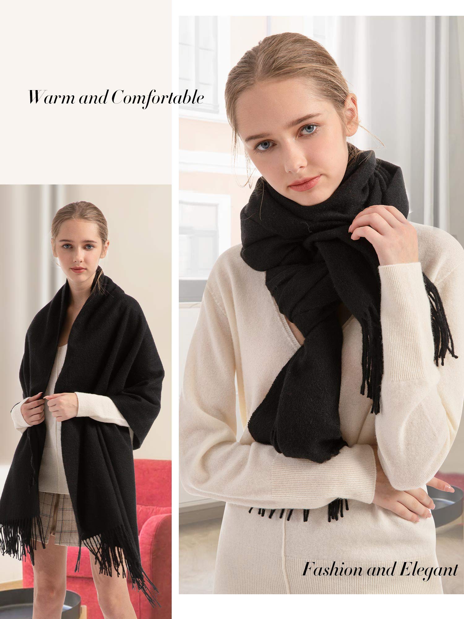 【Luxurious Materials】: This scarf shawl is made of merino wool that imported from Australia, soft and skin-friendly, warm and comfortable. It’s going to keep you away from itchy and allergic and no worrying about the smell even wear it for long periods of time, no shrinking and deformation after washing and stretching