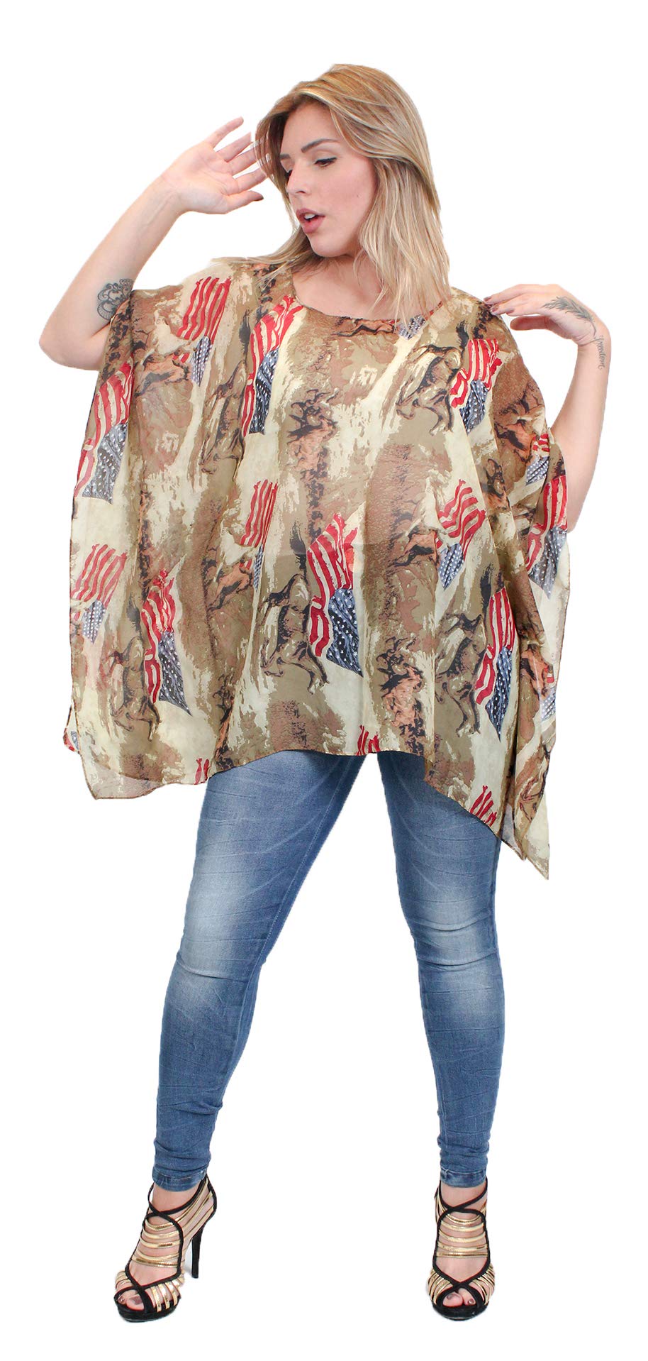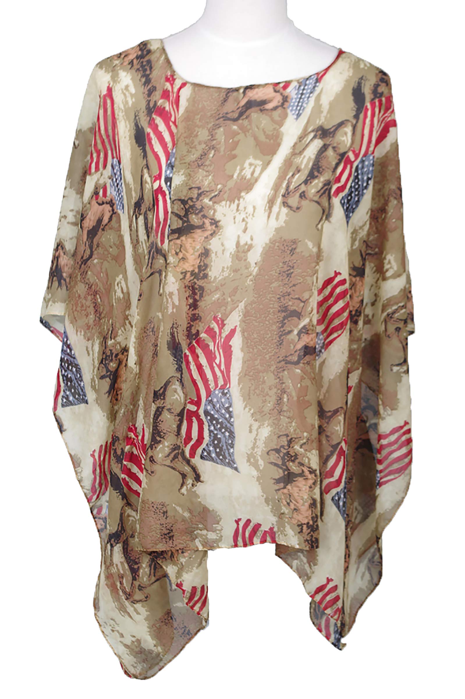 American flag with mustang Size: L28″ x W39″, bust 26″ Material: 100% poly