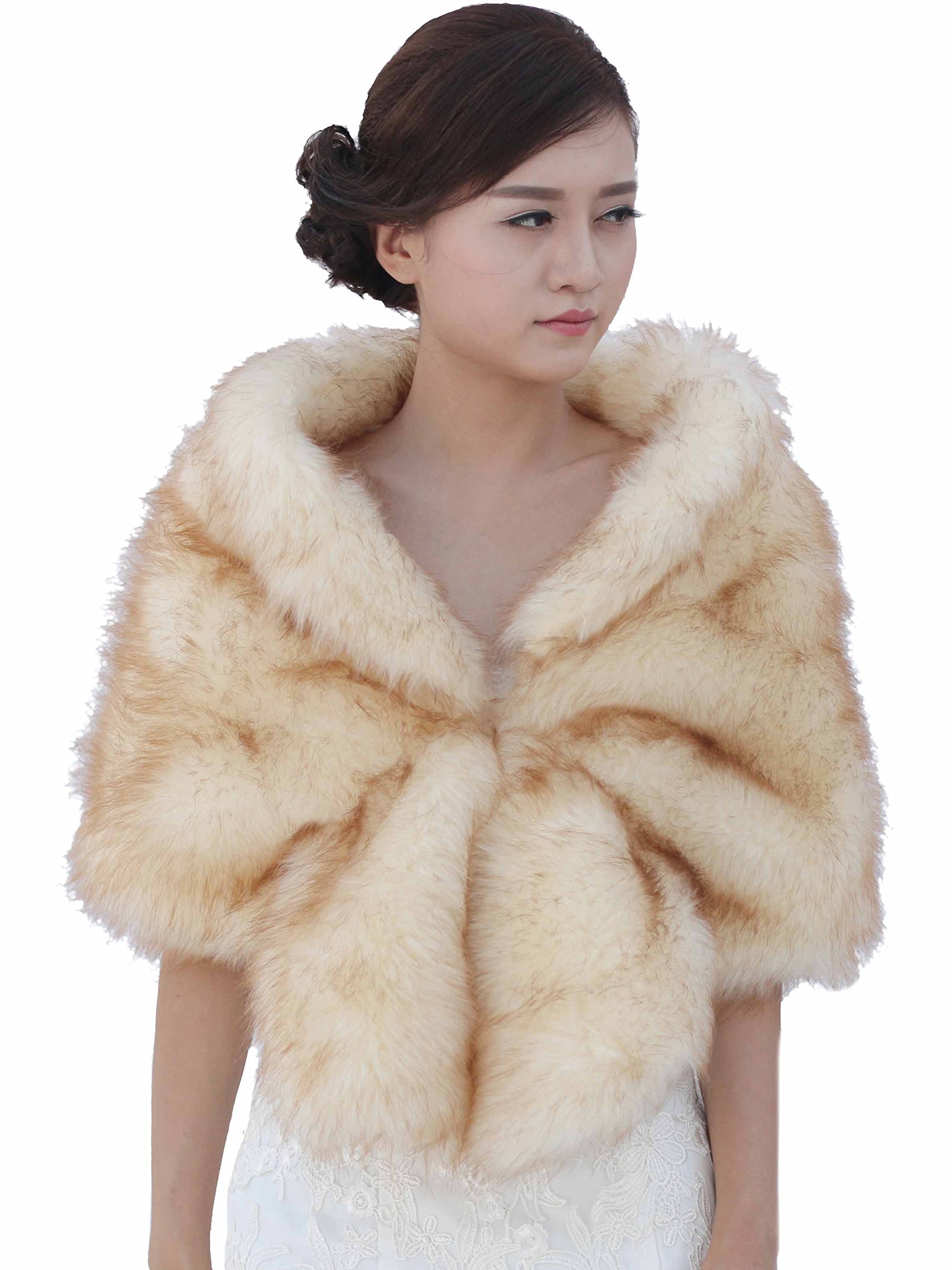 This fur shawl is made of grade A faux fur, satin and clasp. It’s warm and soft enough.