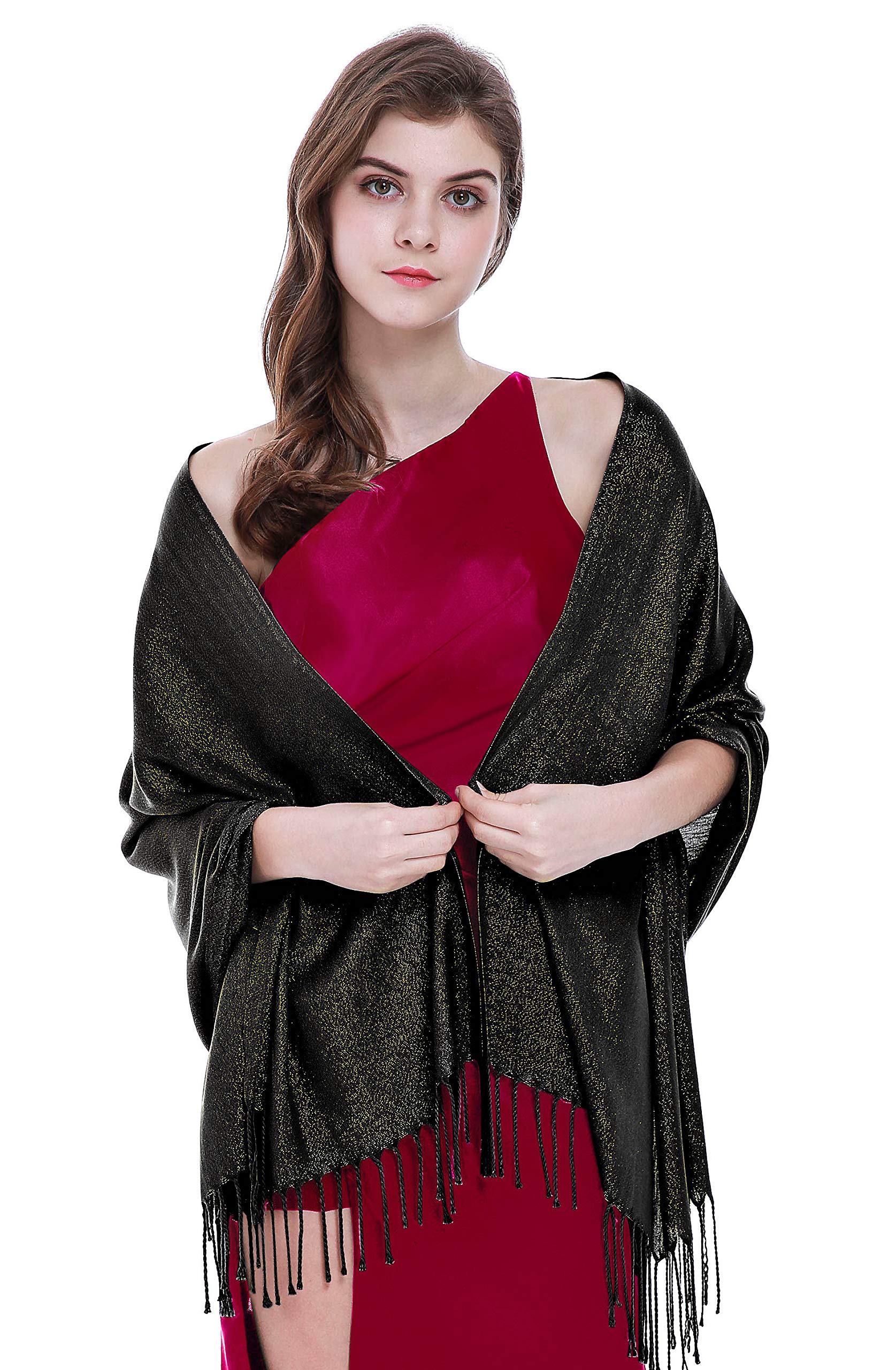 Fashion shining lightweight scarves have a shimmer metallic thread accent and an open knit design.The “sparkle or glitter” within the yarn woven into the material to make a shiny feeling.It is suitable for a dressy party, wedding, honeymoon or any other formal occasions.