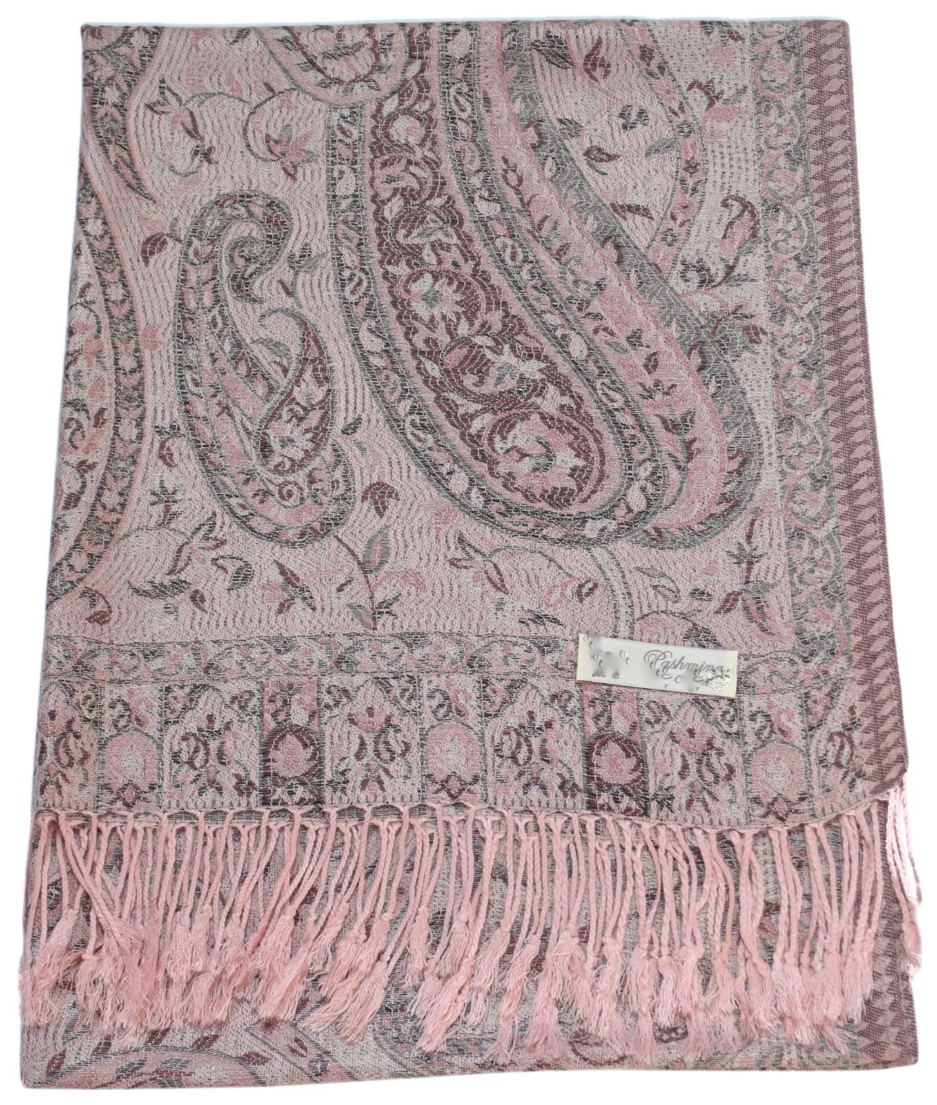 These are beautiful 2 Ply, Top of the range CJ Apparel Pashminas, very soft to touch, and warm for cold evenings. They’re fully reversible and two tone, having a lighter and equally beautiful design on the reverse side. There are intricate floral patterns in the colored main body of the shawl. This shawl has a hashia frame border along all four edges, with Kulka Botehs in the borders at each and every end. It has a 4 inch, hand twisted fringe at each and every end. This Shawl is to be had in 11 primary colors, entwined with Gold and Olive Green in the patterns and floral features. The color mixes and patterns in the Shawl are stunning – a fully gorgeous Shawl! We for my part check each and every Pashmina for quality prior to dispatch, and also have CJ Apparel’s no questions asked refund or exchange policy. CJ Apparel Pashminas are substantially better quality than those sold through many of our competitors. They’re versatile, and can complement any outfit. Absolutely gorgeous, Top of the range shawls!